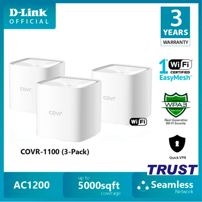 Máy tính & Laptop > Thiết Bị Mạng > Bộ Phát Wifi || D-LINK COVR-1100-3 (3-Unit) Gigabit - Bộ phát Wi-fi băng tần kép chuẩn AC1200 Whole Home Mesh GigabitCòn hàng
