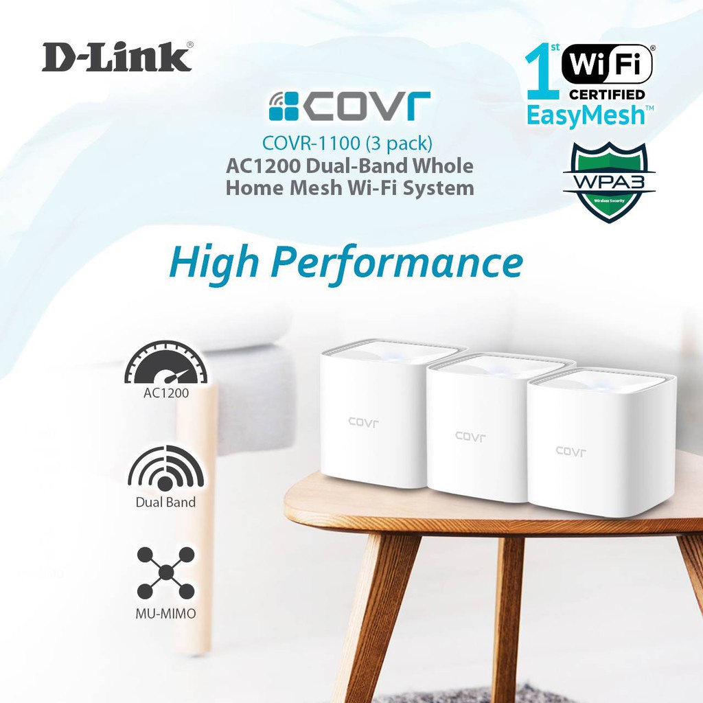 D-LINK COVR-1100-3 (3-Unit) Gigabit - Bộ phát Wi-fi Mesh băng tần kép chuẩn AC1200 Whole Home Mesh Gigabit