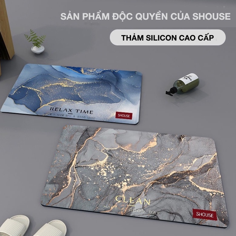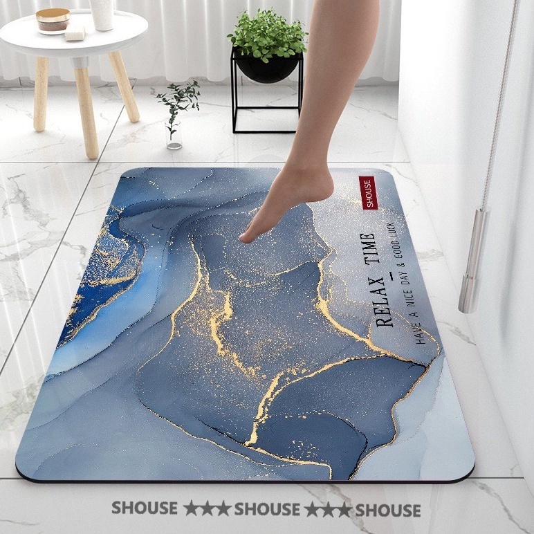 Thảm Lau Chân chùi chân Silicon vân đá đế cao su chống trơn trượt siêu thấm hút nước phòng tắm cho khách sạn