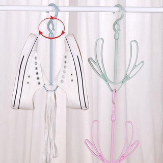Giá phơi giày có thể được treo liền nhau nhằm tăng thêm số lượng giày, dép được phơi.