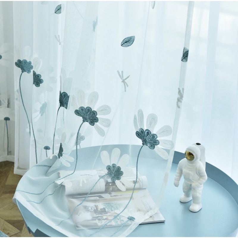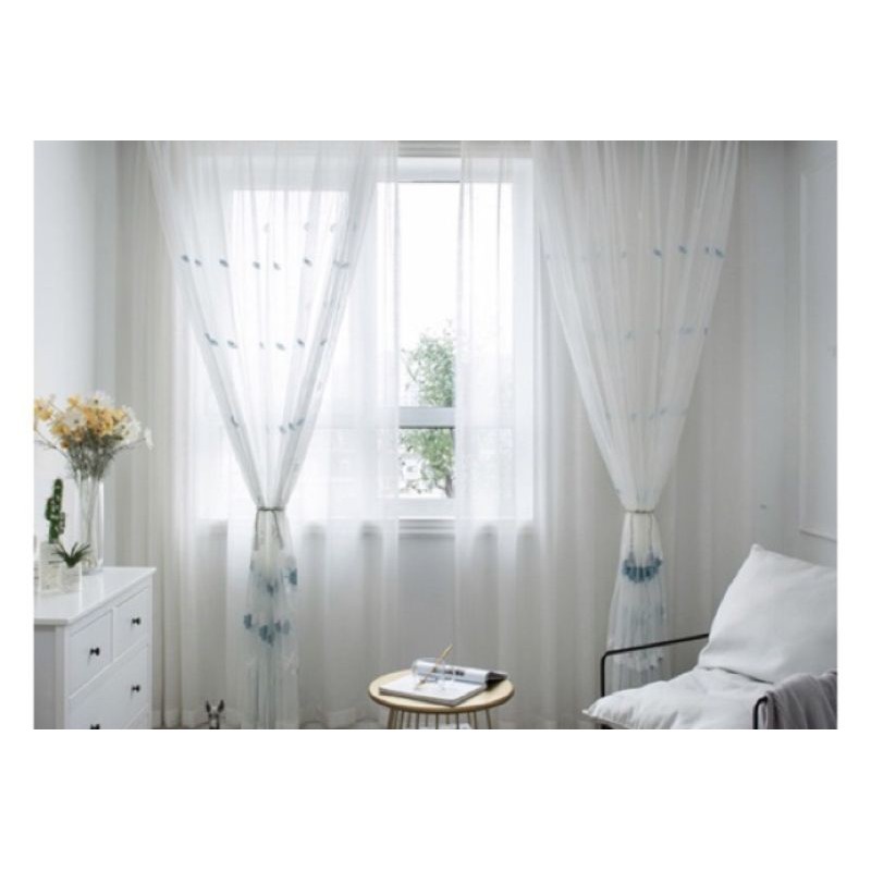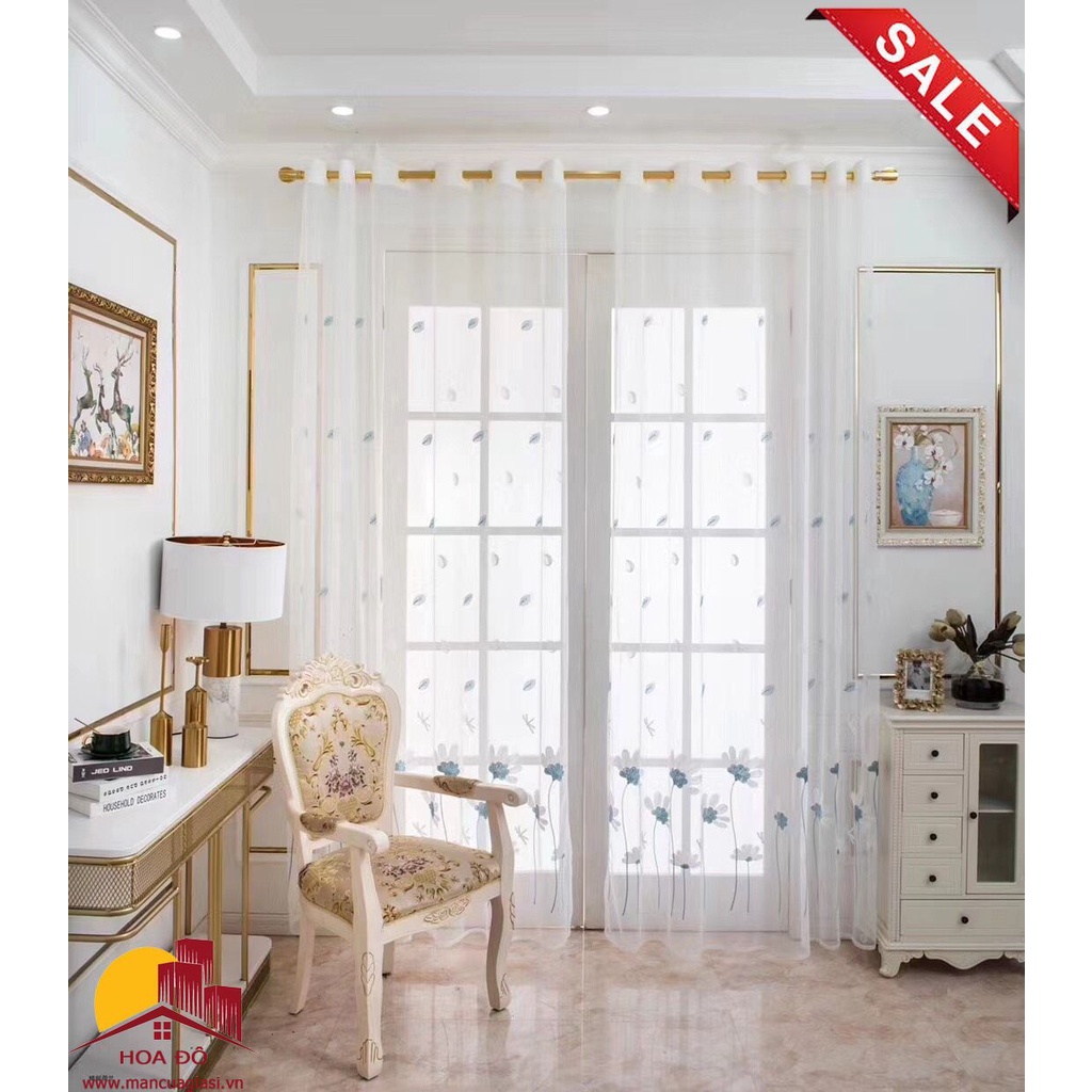 Nhà cửa & Đời sống > Trang trí nhà cửa > Rèm cửa, màn che || (ĐÃ MAY ĐỤC LỖ HOÀN THIỆN) RÈM VOAN THÊU HOA CÚC XANH XINH XẮN, - Trang trí nhà cửa.Còn hàng