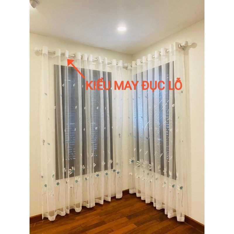 (ĐÃ MAY ĐỤC LỖ CÓ NHÚNG HOÀN THIỆN) RÈM VOAN THÊU HOA CÚC XANH XINH XẮN- KIỂU MAY: ĐỤC LỖ
