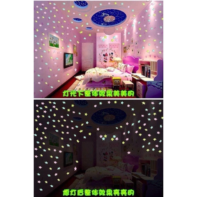 - Dán sao lên tường, tủ, trần nhà...(nên dán nơi có nguồn sáng mạnh như cửa sổ, bóng điện)