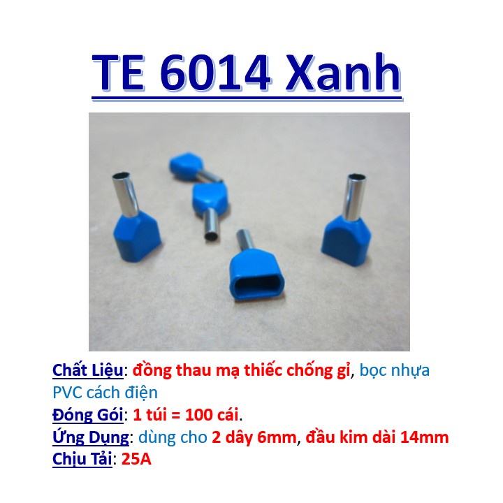 Thiết Bị Điện Gia Dụng > Khác || Đầu cos pin rỗng đôi TE4012, TE6014, TE10-14 100cáicosse kim bằng đồng bọc phủ nhựa, cốt bấm nối dây điện 4, 5, 6mmCòn hàng