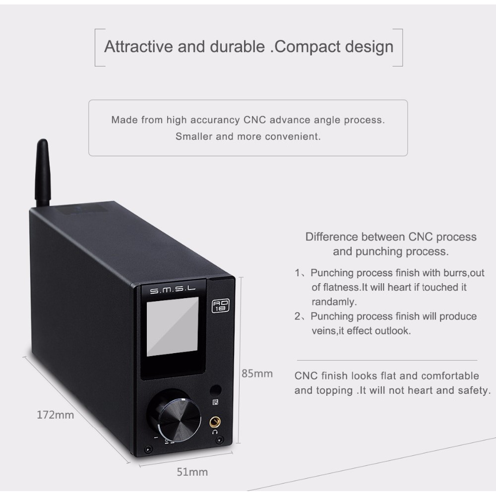 Thiết Bị Âm Thanh > Amply và đầu chỉnh âm || [Mã 44ELSALE2 giảm 7% đơn 300K] Bộ DAC Giải Mã Âm Thanh HI-FI Bluetooth 4.2 S.M.S.L AD18Còn hàng