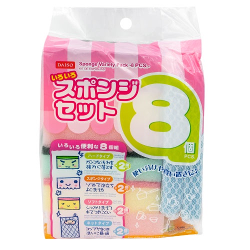 Nhà cửa & Đời sống > Dụng cụ chăm sóc nhà cửa > Miếng bọt biển, miếng chà vệ sinh || Daiso Bộ 8 miếng Mút Rửa ChénCòn hàng