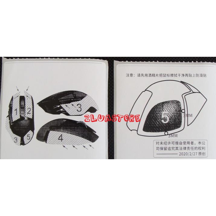 5. Bộ dán cho chuột G102/G304/GPRO: Gồm 4 miếng nhỏ cắt theo form chuột. 2 miếng dán trên chỗ click trái phải, 2 miếng dán bên hông.