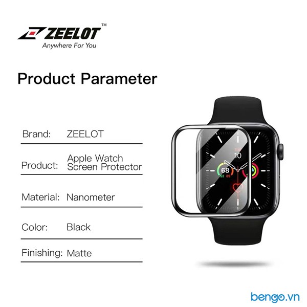 Giới thiệu Dán Cường Lực Apple Watch Zeelot Nanometer Clear Full Keo/Full Keo Chống Vân Tay