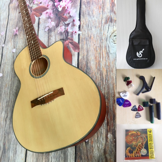 Đàn Guitar acoustic + Compo 9 phụ kiện cho guitar ( Bao da, capo, bộ dây, lục giác, móng cái, tay quay, hộp pick..)