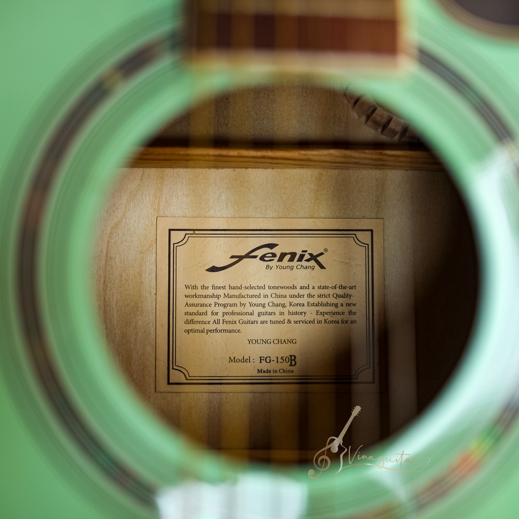 Đàn guitar Acoustic Fenix Xứng đáng được lựa chọn trong phân khúc đàn tầm trung với giá hạt dẻ nhưng kết cấu cực chuẩn. Điều đáng quan tâm nhất là phần action đàn rất êm dịu, dễ bấm rất thích hợp cho người mới chơi. Bên cạnh là chất âm hay, vang sáng mà bass trầm - với gam màu độc lạ cũng xứng đáng để ôm ấp hàng ngày. Hàng khi khui thùng đã toát lên mình vẽ đẹp sang trọng của nó Các bộ phận cũng như các chi tiết trên đàn cũng được quan tâm và được gia công khá sắc sảo từ bộ khóa, lược, ngựa, cần đàn, cần, chấm, chỉ, màu sơn,... Cần đàn cũng có lắp ty căng chỉnh cong cần, đi kèm bộ đàn là lục giác chỉnh cần khi cần thiết hoặc nâng-hạ dây theo sở thích chơi đàn. Guitar Acoustic là dòng đàn dành cho những bản nhạc sôi động và không có gì hợp hơn khi bạn lựa chọn một cây đàn màu đen huyền bí, mạnh mẽ. Có một số người quan niệm rằng không chỉ thiết kế đàn làm cho âm thanh đàn có hồn mà màu sắc cũng rất quan trọng. Nếu sử dụng đàn có màu sắc yêu thích sẽ giúp bạn chơi đàn thoải mái và tuyệt vời hơn.