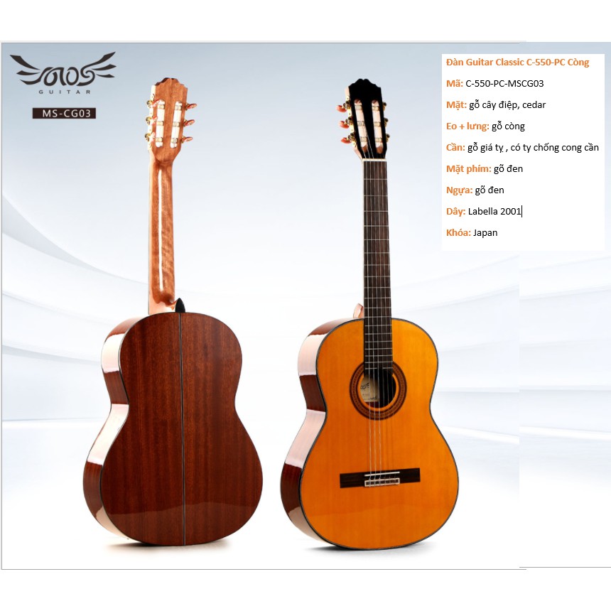Đàn Guitar Classic C-550- PC Gỗ cây điệp size 3/4Mã: C-550-PC-MSCG03