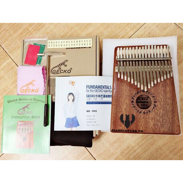 - Phụ kiện Kalimba #Gecko chính hãng đi kèm khi mua hàng bao gồm: Đàn + Búa chỉnh âm + Sticker dán nốt + Decal xanh và đỏ + Khăn lau + Túi đựng + Hộp đựng đàn Kalimba Gecko + Xốp đệm chống sốc. Đặc biệt tặng kèm Kèn #Harmonica đủ màu sắc giao ngẫu nhiên. Chưa hết, ngoài ra bạn sẽ được thầy Tún hỗ trợ học đàn Kalimba