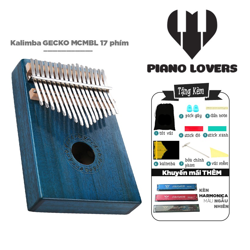Đàn Kalimba 17 phím Gecko K17MBL Gỗ Mahogany Tặng Kèm Kèn Harmonica đủ màu cao cấp - HÀNG CÓ SẴN