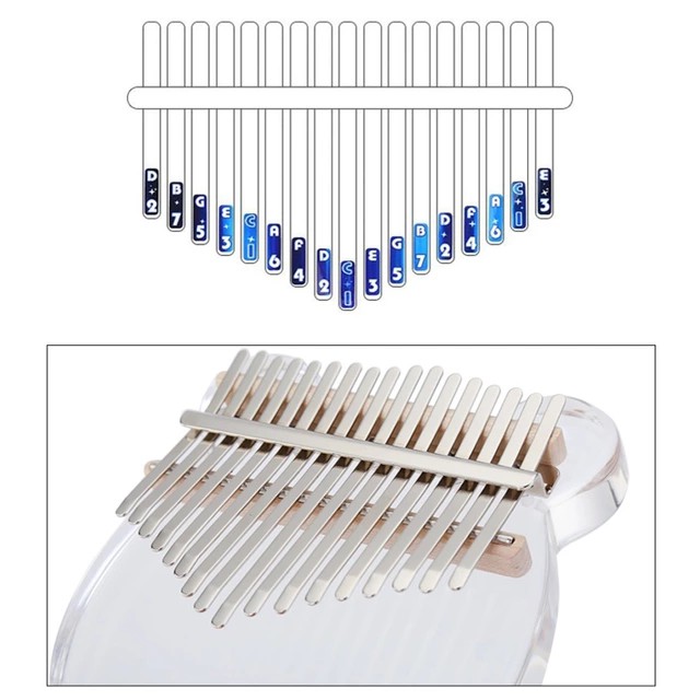 Đàn kalimba trong suốt gấu AcrylicPhụ kiện được tặng gồm: Stick dán màu,dán nốt