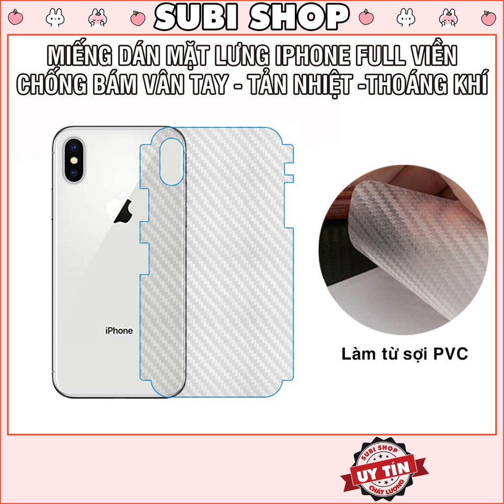 Dán Lưng Điện Thoại Cacbon / Carbon Chống Vân Tay Chống Xước 6/6plus/6s/ppf/7/7plus/8/8plus/x/xr/xs/11/12/pro/max/plus