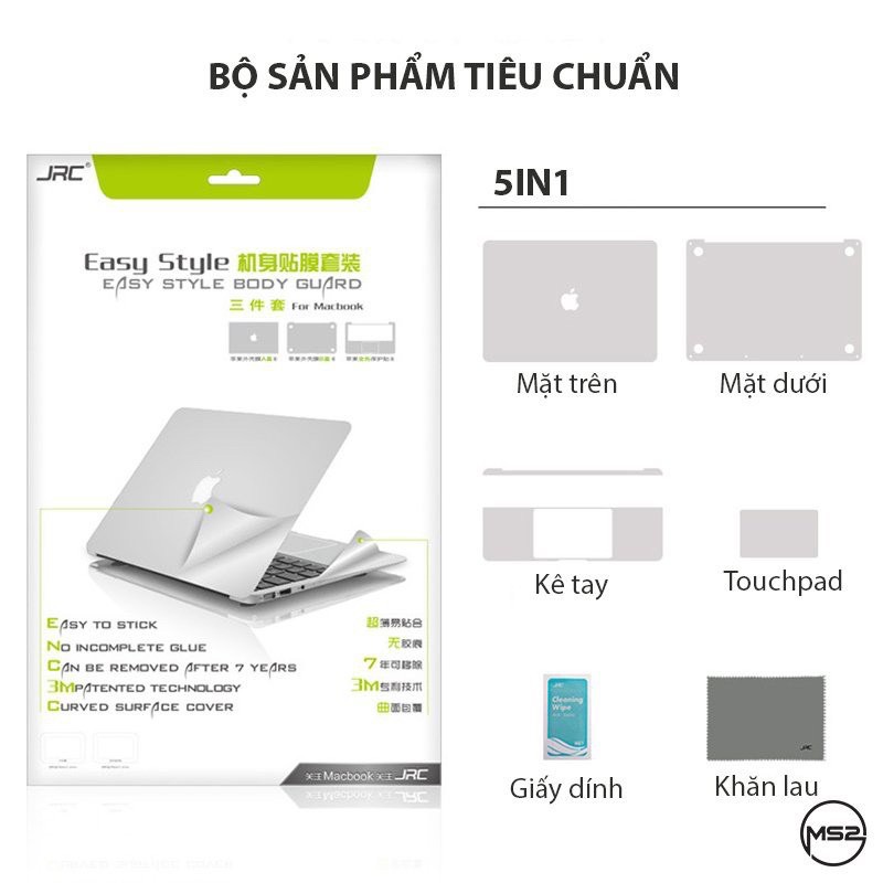 Giới thiệu Bộ dán Macbook JRC 4in1 màu xám/bạc/gold/rose gold. Dán macbook air, macbook pro đủ dòng