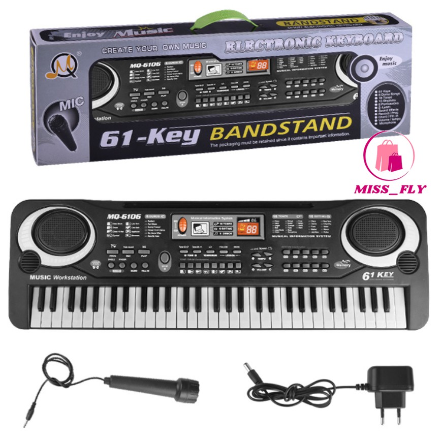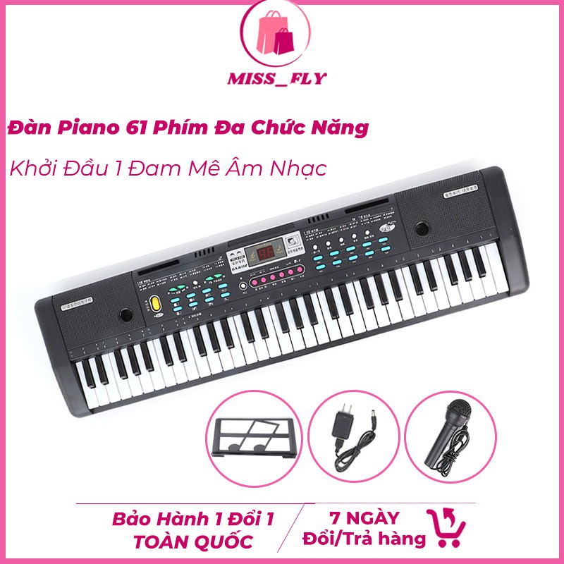 Đàn Piano điện tử cho bé Đàn 61 phím Organ phát triển tài năng âm nhạc cho người mới bắt đầu tặng kèm mic hát thỏa thích - missflyLưu ý:Đàn có thể dùng pin Ạ hoặc sạc điện , shop ko có kèm pin A