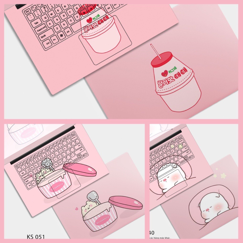 Máy tính & Laptop > Phụ Kiện Máy Tính > Miếng Dán & Ốp Laptop || Dán Skin Laptop - Skin Cắt Sẵn Theo Từng Dòng Máy - Skin Màu Hồng Dễ Thương (3 mẫu KS 040, 050, 051)Còn hàng