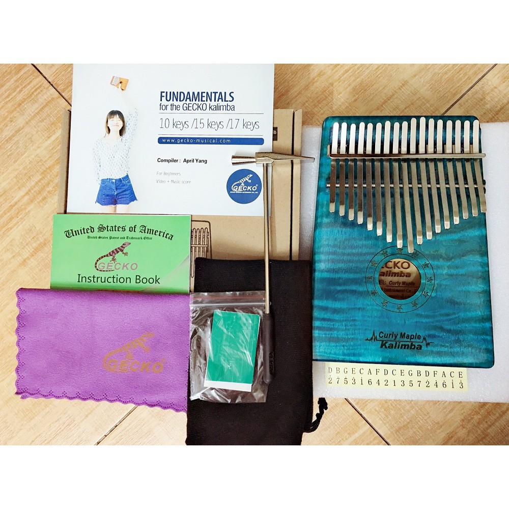 Tặng kèm phụ kiện bao gồm hộp + búa + vải nhung + sticker dán note + Hộp đựng đàn Kalimba Gecko + Xốp chống sốc. Chưa hết, sau khi bạn nhận được sản phẩm bạn sẽ được thấy tún hướng dẫn chơi
