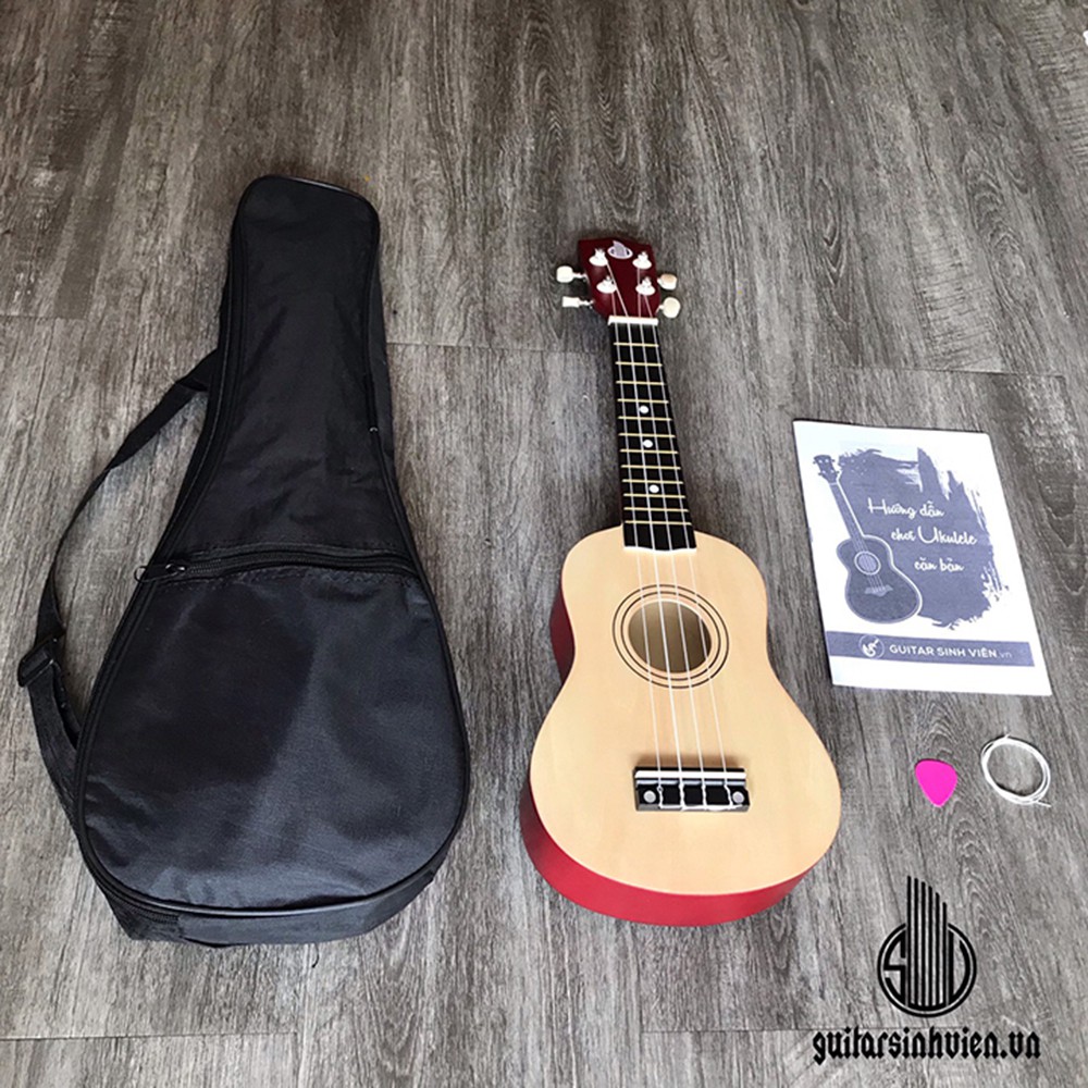 Đàn ukulele cỡ soprano mặt gỗ trắng lưng đỏ cho người mới tập