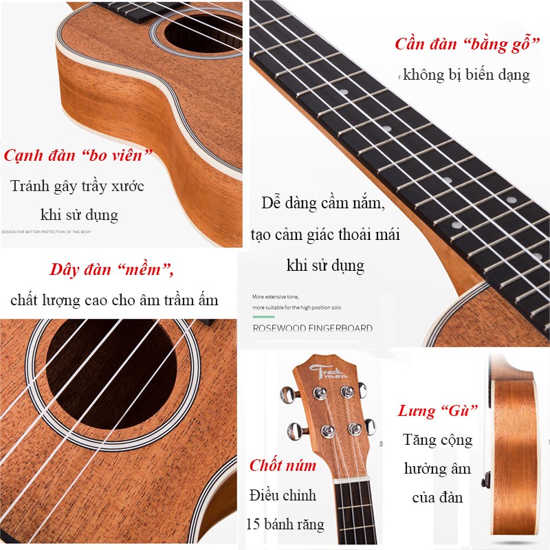 ✅ 2、Đàn được làm bằng gỗ Mahogany bền đẹp, chắc chắn, không bị biến dạng, cong vênh trong quá trình sử dụng.