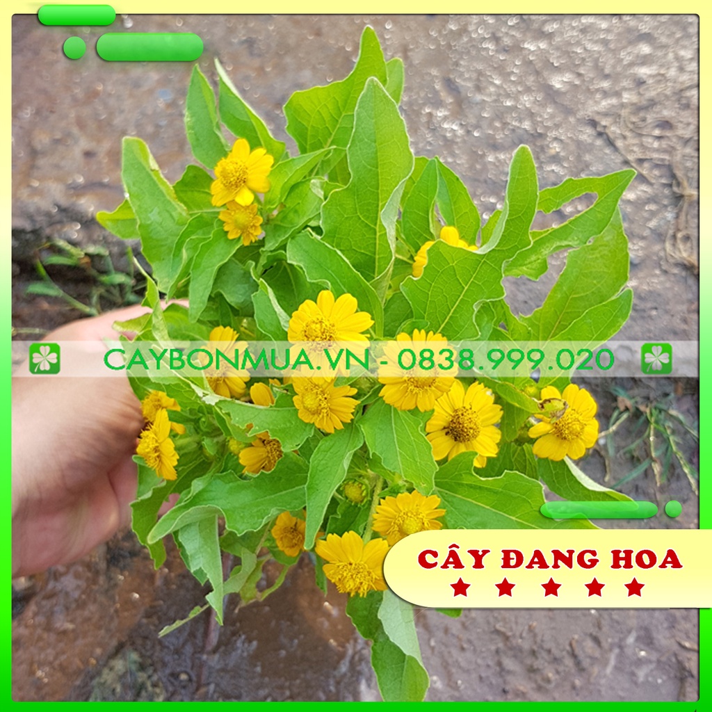 Hoa tròn nhỏ có màu vàng tươi với nhiều cánh hoa xếp thành một vòng tròn quanh nhị hoa. Những cánh hoa này nhìn như những tia nắng mặt trời ấm áp. Hoa mọc ra từ kẽ lá, cây cho hoa nở quanh năm.