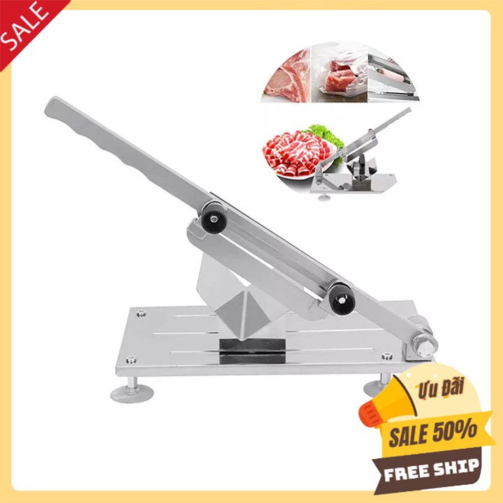 + Máy cắt thịt bằng tay được chế tạo bằng vật liệu inox cao cấp. Máy chuyên dùng thái thịt bò, thịt lợn, thịt cừu, thịt dê, thịt bê, thịt trâu... đông đá.