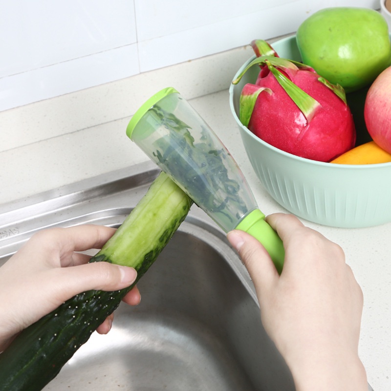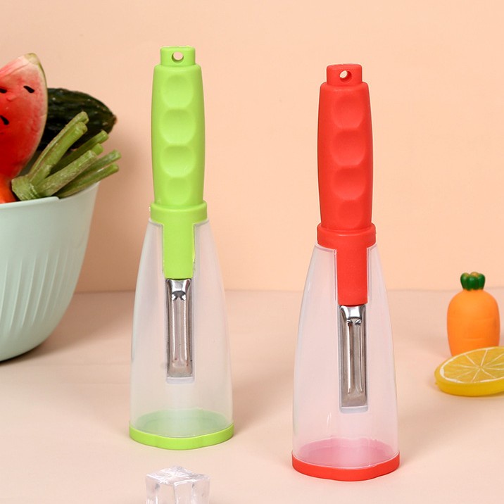 Nhà cửa & Đời sống > Dụng cụ nhà bếp > Bàn nạo, dụng cụ bào, cắt || Dao nạo/ gọt hoa quả thông minh có ống đựng vỏ tiện lợi được làm từ inox mạ không gỉ và nhựa PP an toàn cho sức khoẻCòn hàng