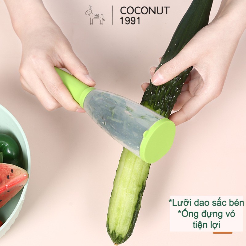 Dao nạo/ gọt hoa quả thông minh có ống đựng vỏ tiện lợi được làm từ inox mạ không gỉ và nhựa PP an toàn cho sức khoẻ