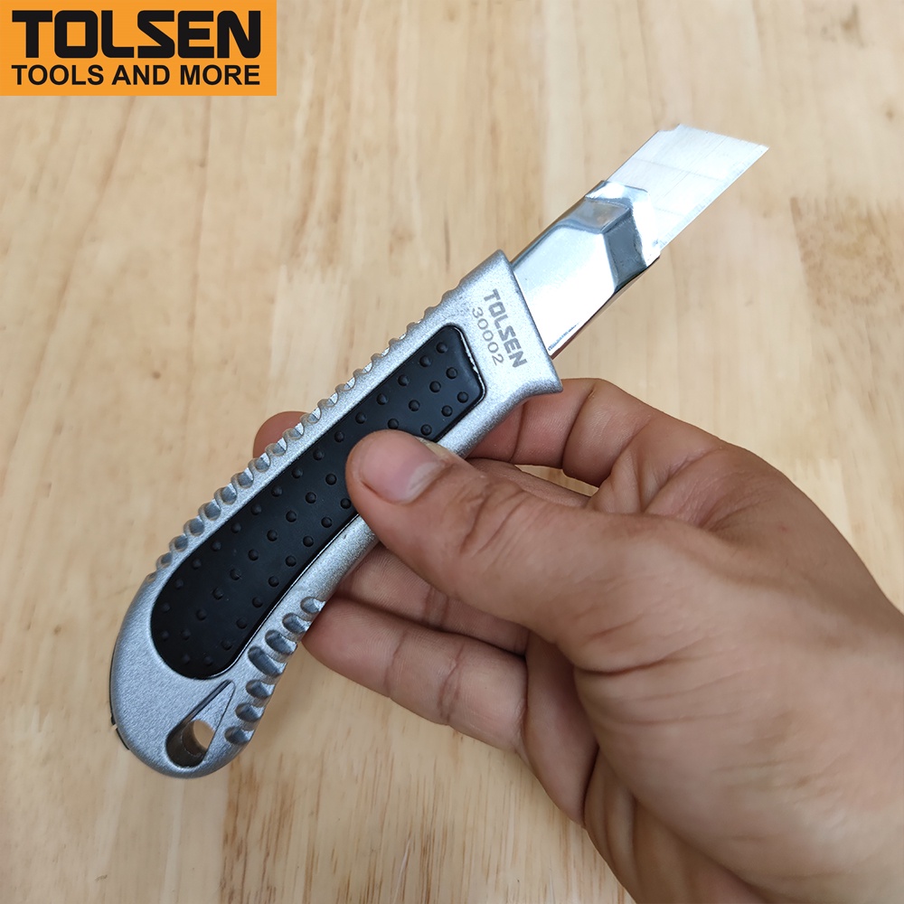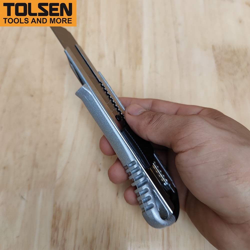 Dao rọc giấy cán nhôm 18x100mm Tolsen 30002 là một trong những dụng cụ thủ công phổ biến trong các công việc văn phòng hay những công việc có liên quan đến cắt dán giấy, các loại hộp. Dao rọc giấy Tolsen là một loại dao cắt giấy tiện lợi và khá an toàn.