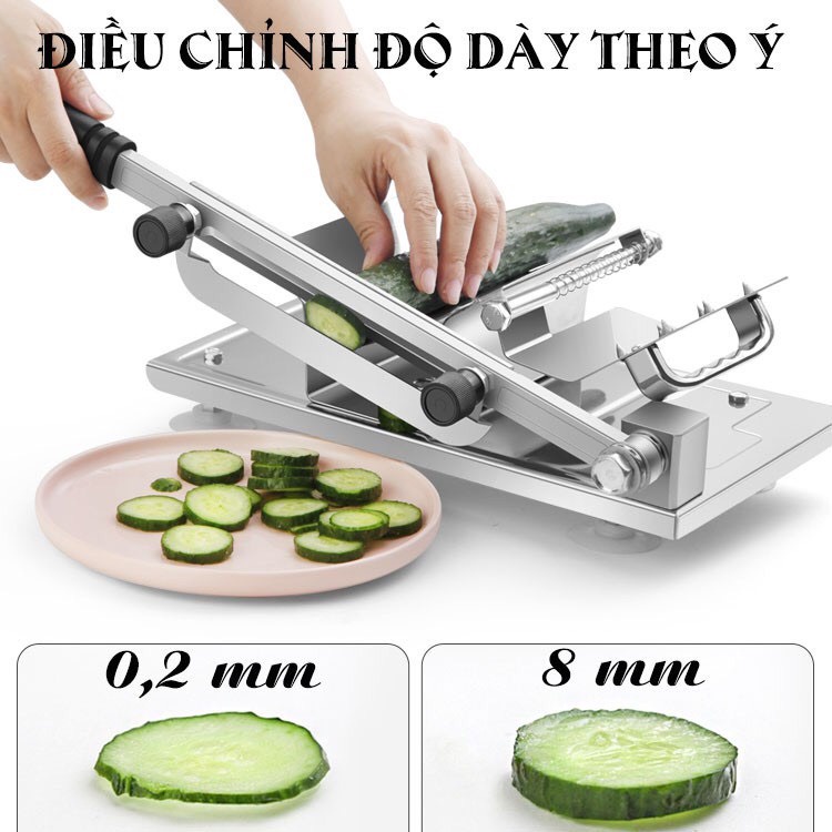 Sản phẩm được thiết kế cực kỳ thông minh, chuyên dùng để thái các loại thịt đông lạnh như: thịt lợn, thịt bò, thị trâu... thành lát mỏng đều, đẹp mắt cực nhanh. Sản phẩm phợp cho nhà hàng, quán ăn, gia đình… Đặc biệt phù hợp với các món lẩu bò, bạn sẽ tự thái được các miếng thịt bò thành lát mỏng cực nhanh, đẹp mắt và an toàn