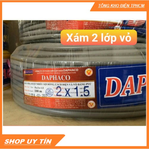 [DAPHACO] Dây Điện Đôi 2x1.5 - Cuộn 100 Mét Dây Pha Tròn Xám 2 Lớp Vỏ Bọc PVC- Dây điện đôi 2x1.5 Daphaco (dây pha mềm 2 lõi đồng 2 lớp PVC cách điện rất an toàn )