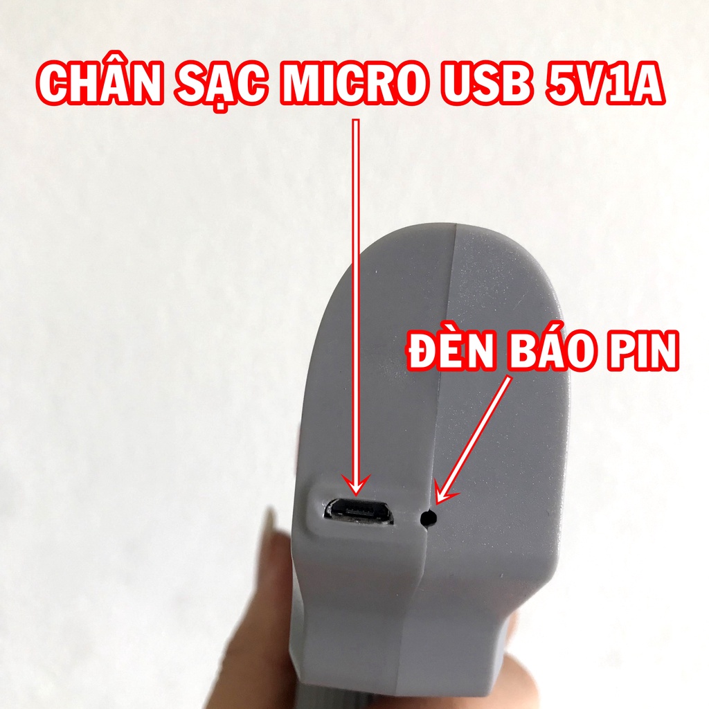 - Chân sạc vào micro USB, có đèn báo trạng thái pin