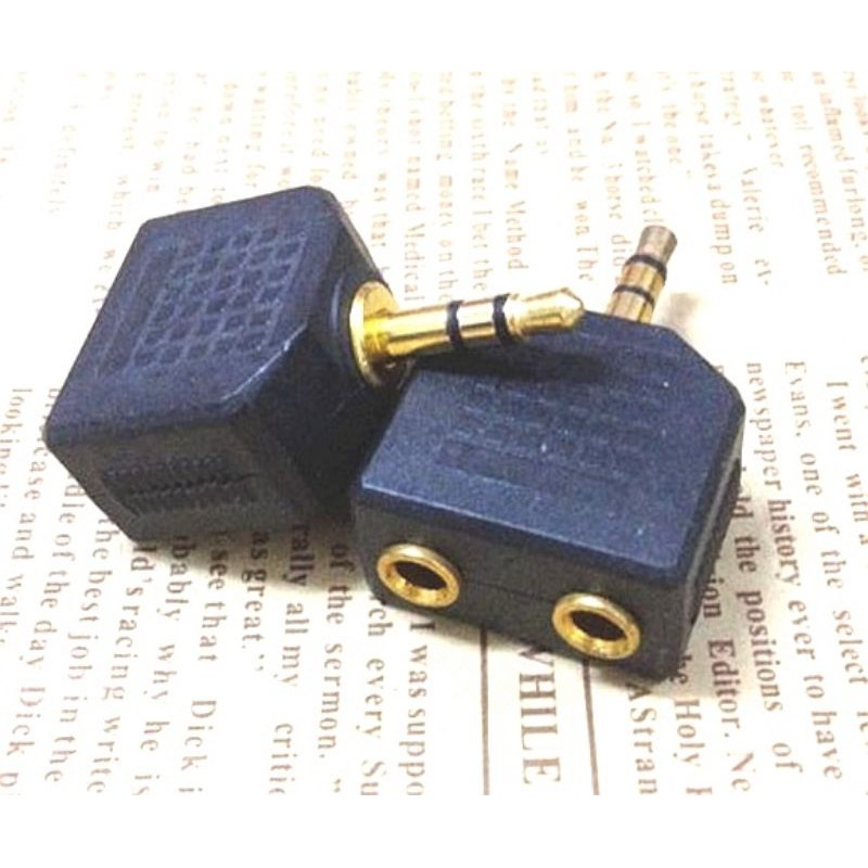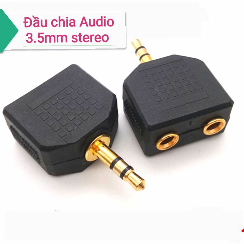 Đầu chia cổng Audio stereo 3.5mm 1 ra 2Chân mạ vàng, 1 đầu 3.5 đực ra 2 lỗ 3.5 cái.