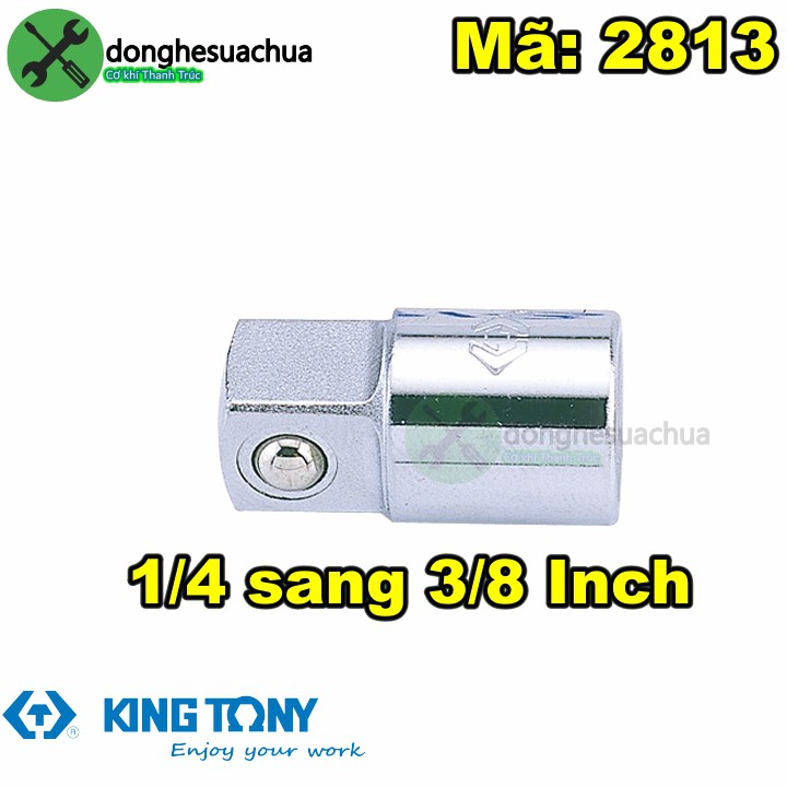 Đầu chuyển 1/4 sang 3/8 Kingtony 2813 màu trắngDùng chuyển từ cần tuýp 1/4 inch (6.35mm) sang vặn đầu tuýp 3/8 inch 9.5mm