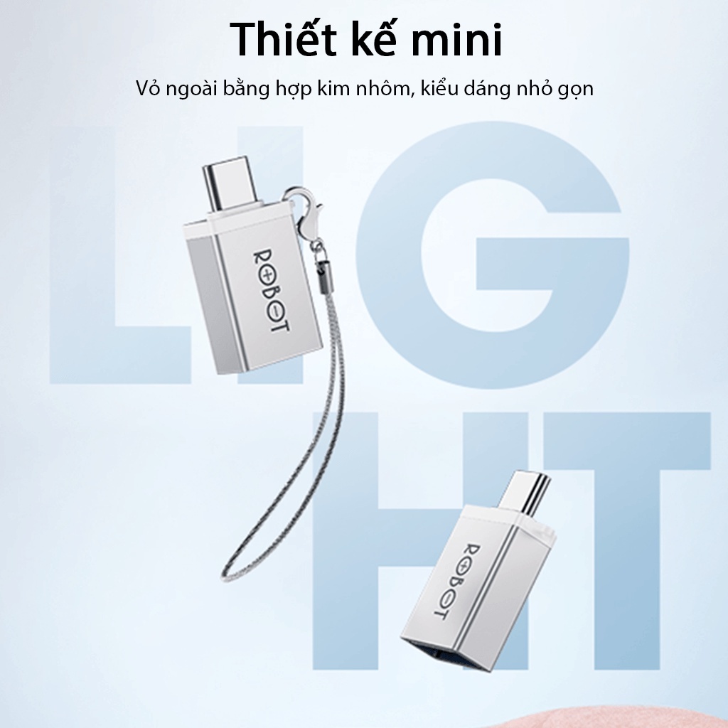 ĐẦU CHUYỂN ĐỔI OTG CỔNG TYPE-C SANG USB 3.0 ROBOT RT-OTG04 - CHẤT LIỆU VỎ KIM LOẠISản phẩm chính hãng ROBOT