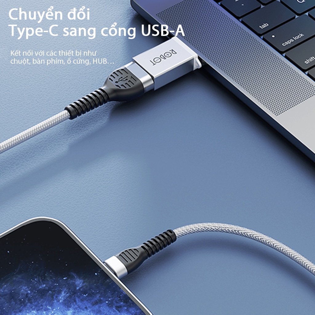 ĐẦU CHUYỂN ĐỔI OTG CỔNG TYPE-C SANG USB 3.0 ROBOT RT-OTG04 - CHẤT LIỆU VỎ KIM LOẠISản phẩm chính hãng ROBOT