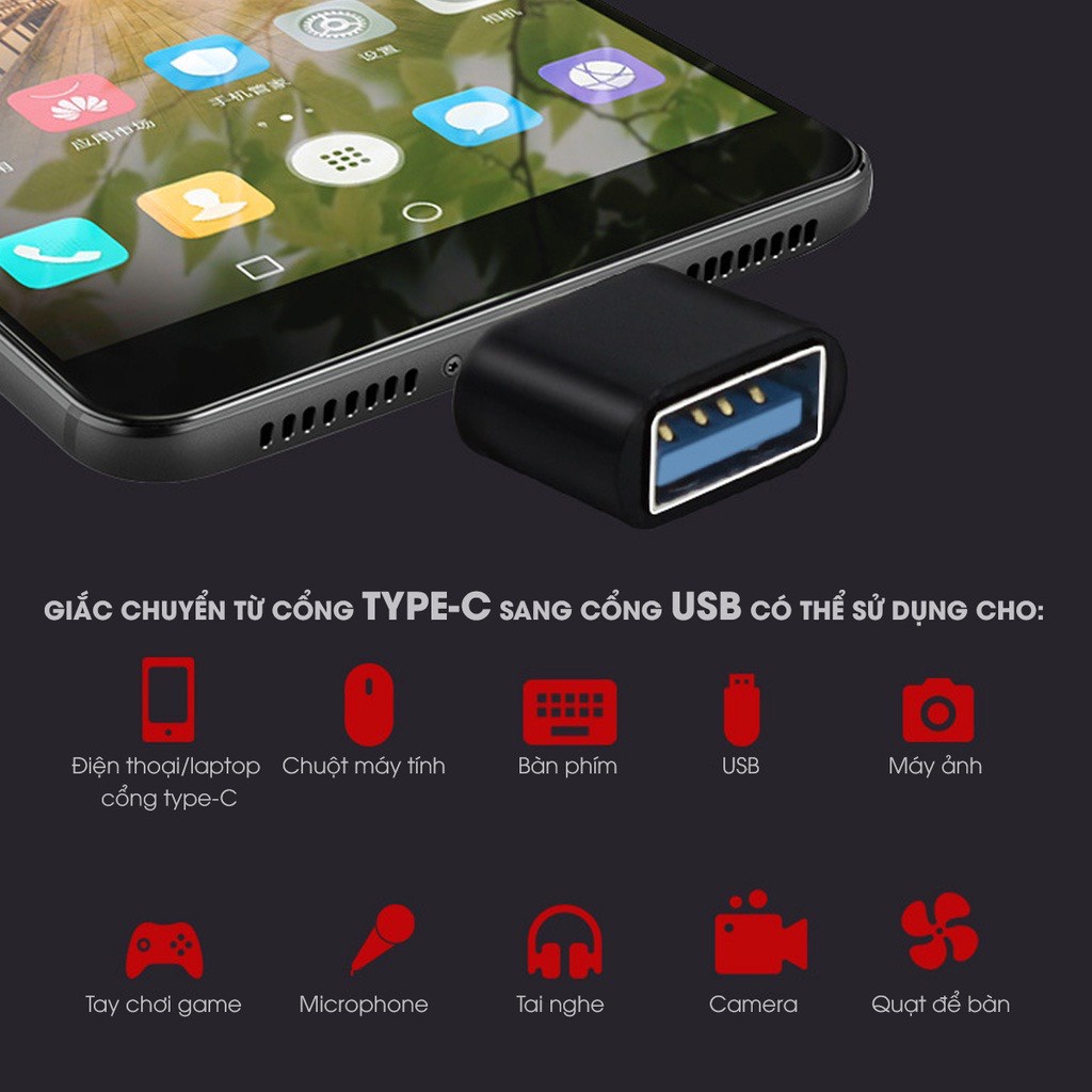 Đầu chuyển đổi từ cổng Type-C sang cổng USB giành cho các máy macbook, máy tính bảng, điện thoại, máy in nhiệt QR-368 và QR-488 ... giúp bạn dễ dàng kết nối với các thiết bị chỉ hỗ trợ cổng USB thông thường. Sản phẩm nhỏ gọn, dễ mang theo và tiện lợi khi sử dụngGiắc OTG Type-C sang USB sử dụng cho các thiết bị như: