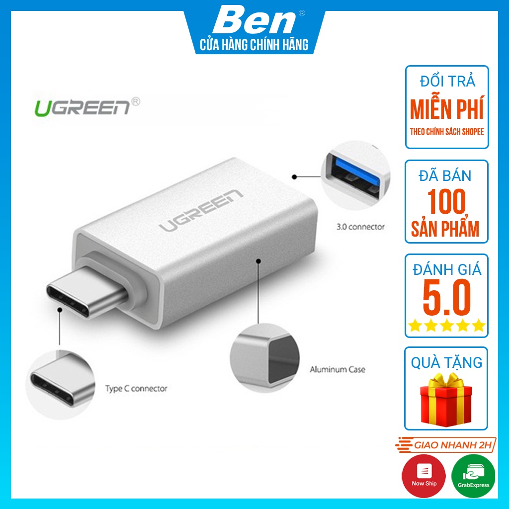Đầu chuyển đổi USB Type-C to USB 3.0 (OTG) Ugreen 30155 chính hãng- Đầu chuyển đổi USB Type-C to USB 3.0 Ugreen 30155 chính hãng giúp bạn kết nối MacBook 2015 chuẩn USB type C của bạn với một số thiết bị với bộ chuyển đổi USB chuẩn 3.0