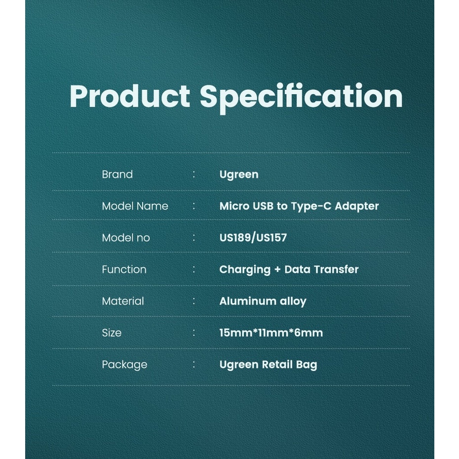 Thông Số Kỹ Thuật Đầu Chuyển USB Type C Sang Micro USB UGreen US189 US157 Cao Cấp