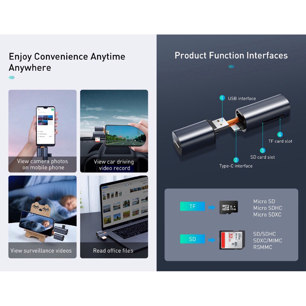Giới thiệu Đầu đọc thẻ Baseus 2 trong 1từ cổng Type C sang SD/Micro SD và chức năng OTG USB cho laptop