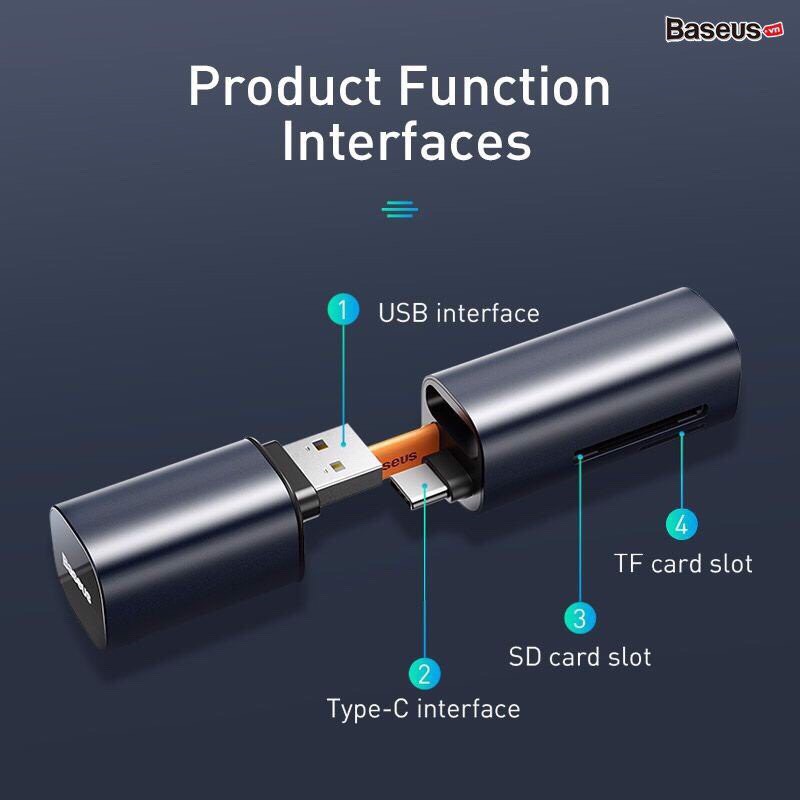 Máy tính & Laptop > Phụ Kiện Máy Tính > Bộ chia cổng USB & Đọc thẻ nhớ || Đầu đọc thẻ Baseus 2 trong 1từ cổng Type C sang SD/Micro SD và chức năng OTG USB cho laptopCòn hàng