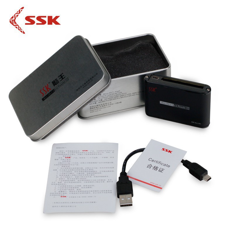 Giới thiệu sản phẩmĐầu đọc thẻ nhớ đa năng SSK SCRM025 All In 1 Card Reader III giúp bạn dễ dàng đọc được tất cả các loại thẻ như: SD, Mini SD, MMC, Plus, SDHC MMC, MMC Turbo, RS – MMC Mobile, RS – MMC, Micro SD Card MS/M2.