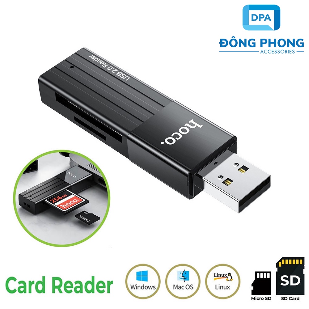 Đầu Đọc Thẻ Nhớ 2.0 Hoco HB20 Chính Hãng, Khe Cắm Thẻ SD & Micro SDGiới thiệu sản phẩm: