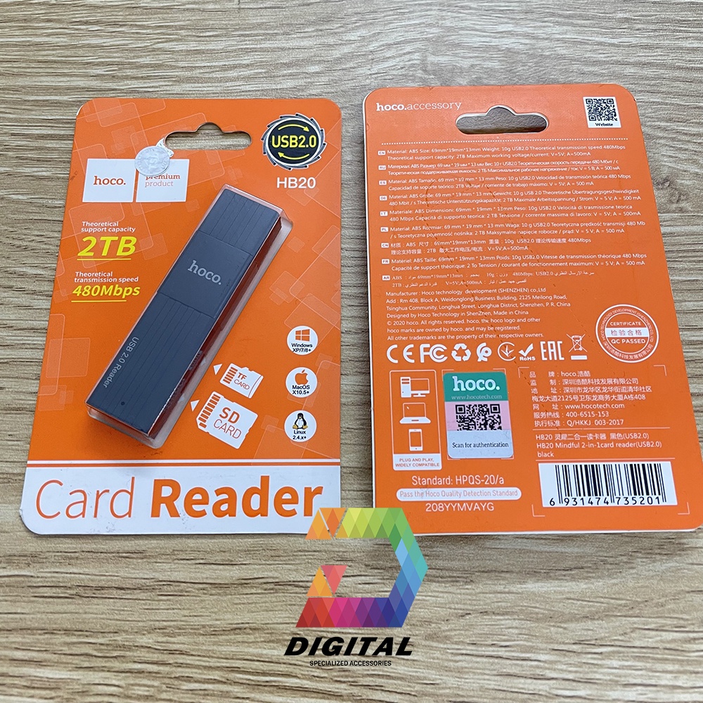 Đầu Đọc Thẻ Nhớ 2.0 Hoco HB20 Chính Hãng, Khe Cắm Thẻ SD & Micro SDGiới thiệu sản phẩm: