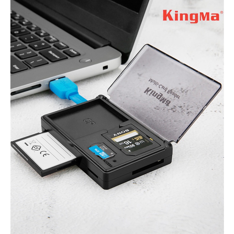 Đầu đọc thẻ nhớ CF/ SD/ MicroSD USB 3.0 chính hãng KingMa tích hợp hộp đựng đa năng