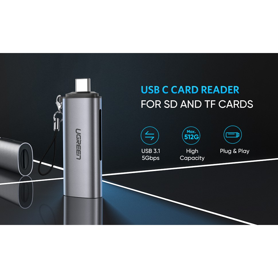 Máy tính & Laptop > Phụ Kiện Máy Tính > Bộ chia cổng USB & Đọc thẻ nhớ || Đầu Đọc Thẻ Nhớ Chuẩn USB Type - C Ugreen 50704 Chính HãngCòn hàng