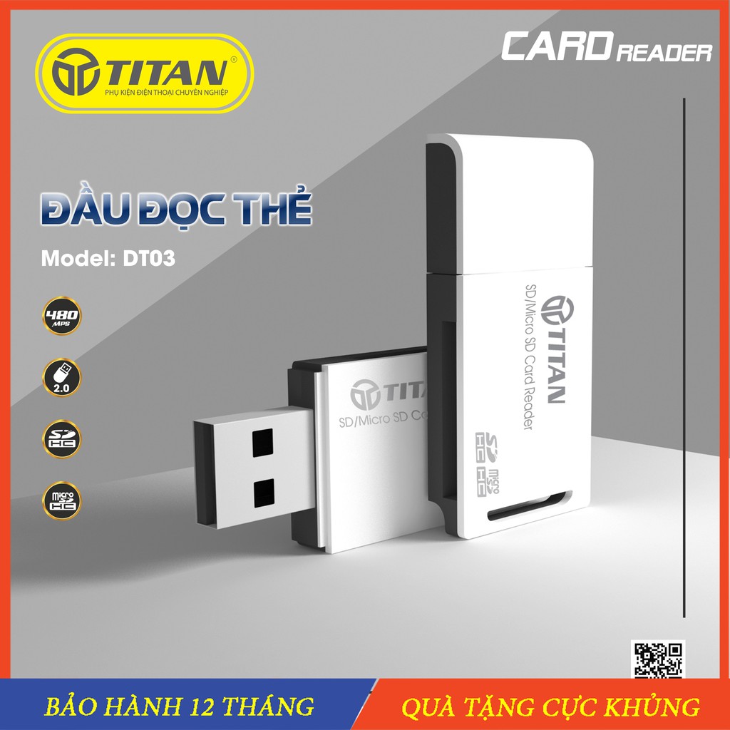 Điện Thoại & Phụ Kiện > Phụ kiện > Thẻ nhớ || Đầu đọc thẻ nhớ Micro SD/SD/MMC, đọc thẻ đa năng Titan Adapter SD cho máy ảnh máy quay phim điện thoại - Chính HãngCòn hàng