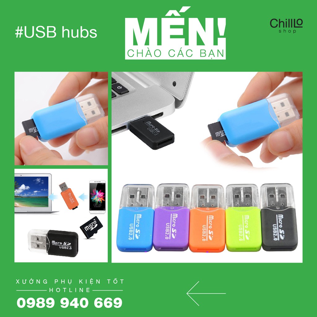 Đầu đọc thẻ nhớ Micro SDHC TF / T-Flash / Micro SD, thẻ nhớ điện thoại dùng để đọc và chép dữ liệu từ thẻ vào máy tính.