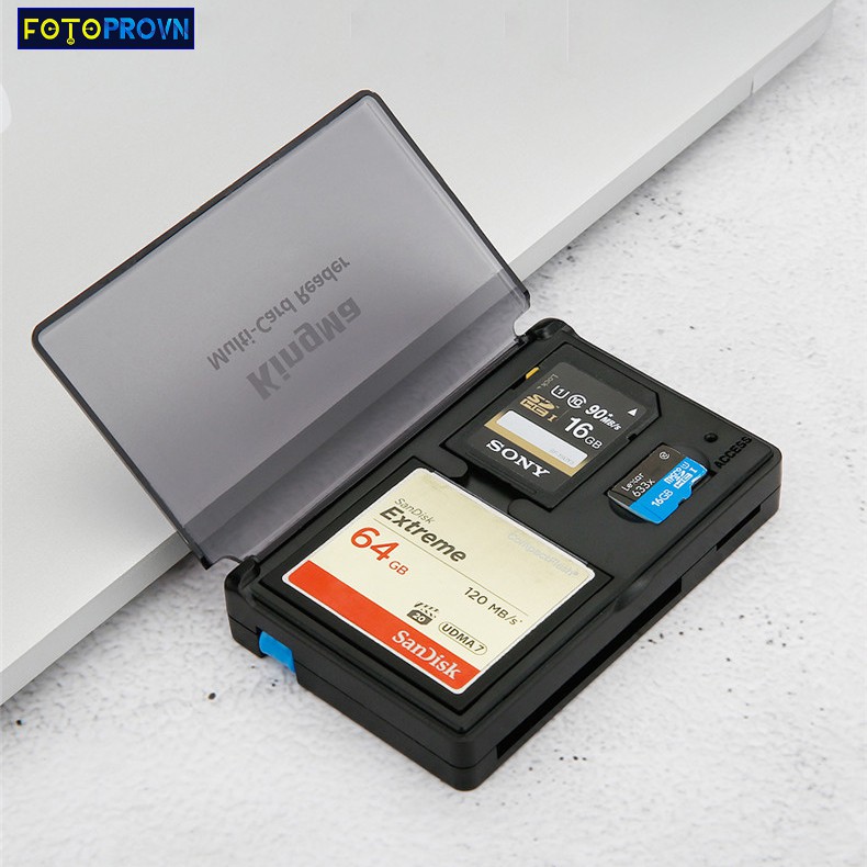 Đầu đọc thẻ nhớ SD,Micro SD,TF,CF cổng USB 3.0 có tích hợp hộp đựng thẻ hàng chính hãng Kingma